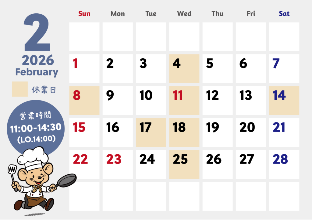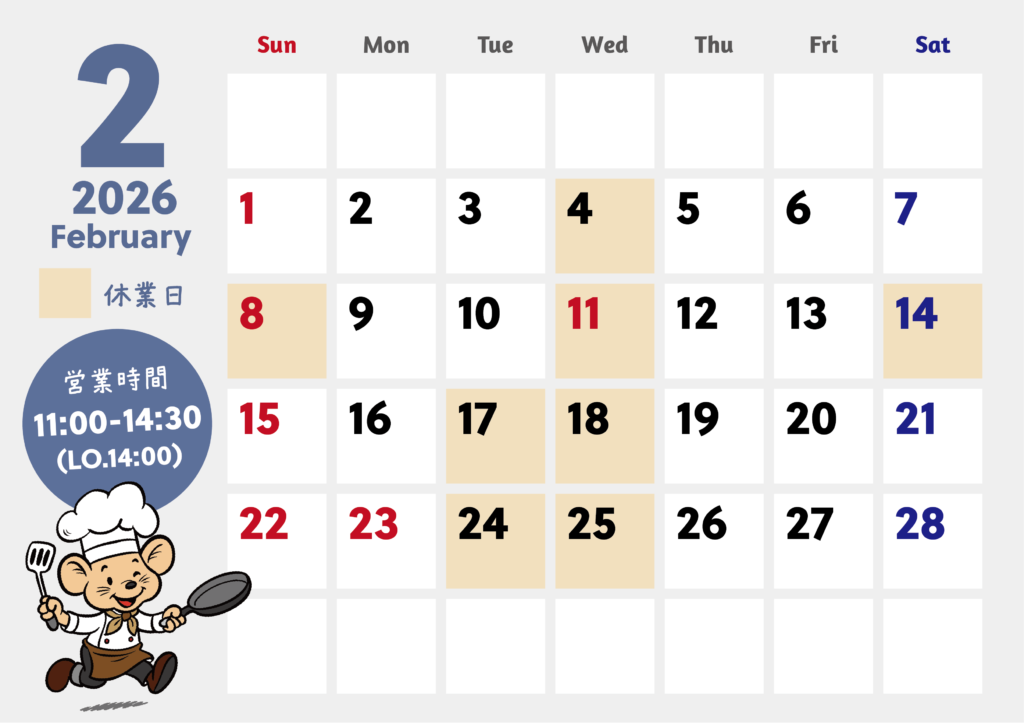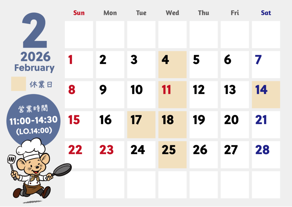 2026.2月営業日のご案内